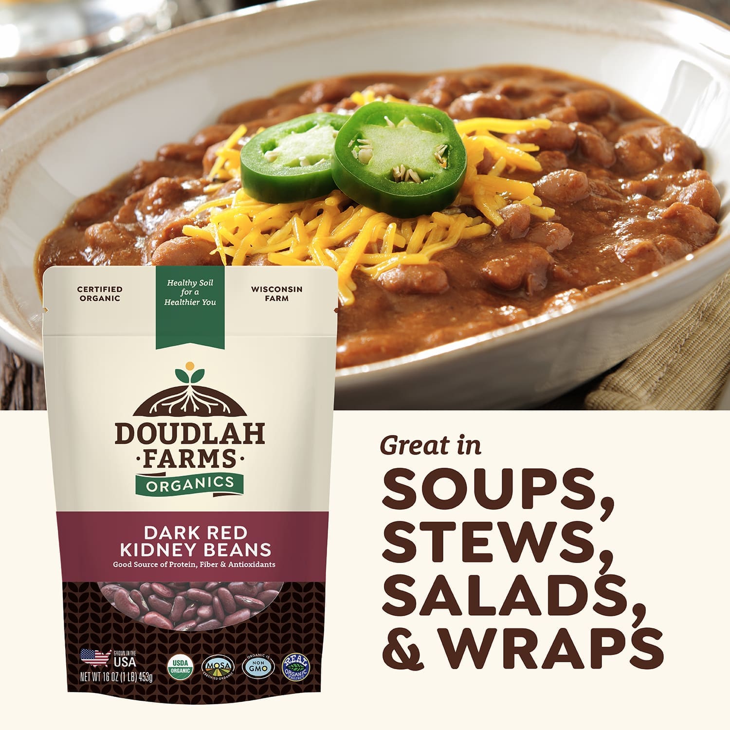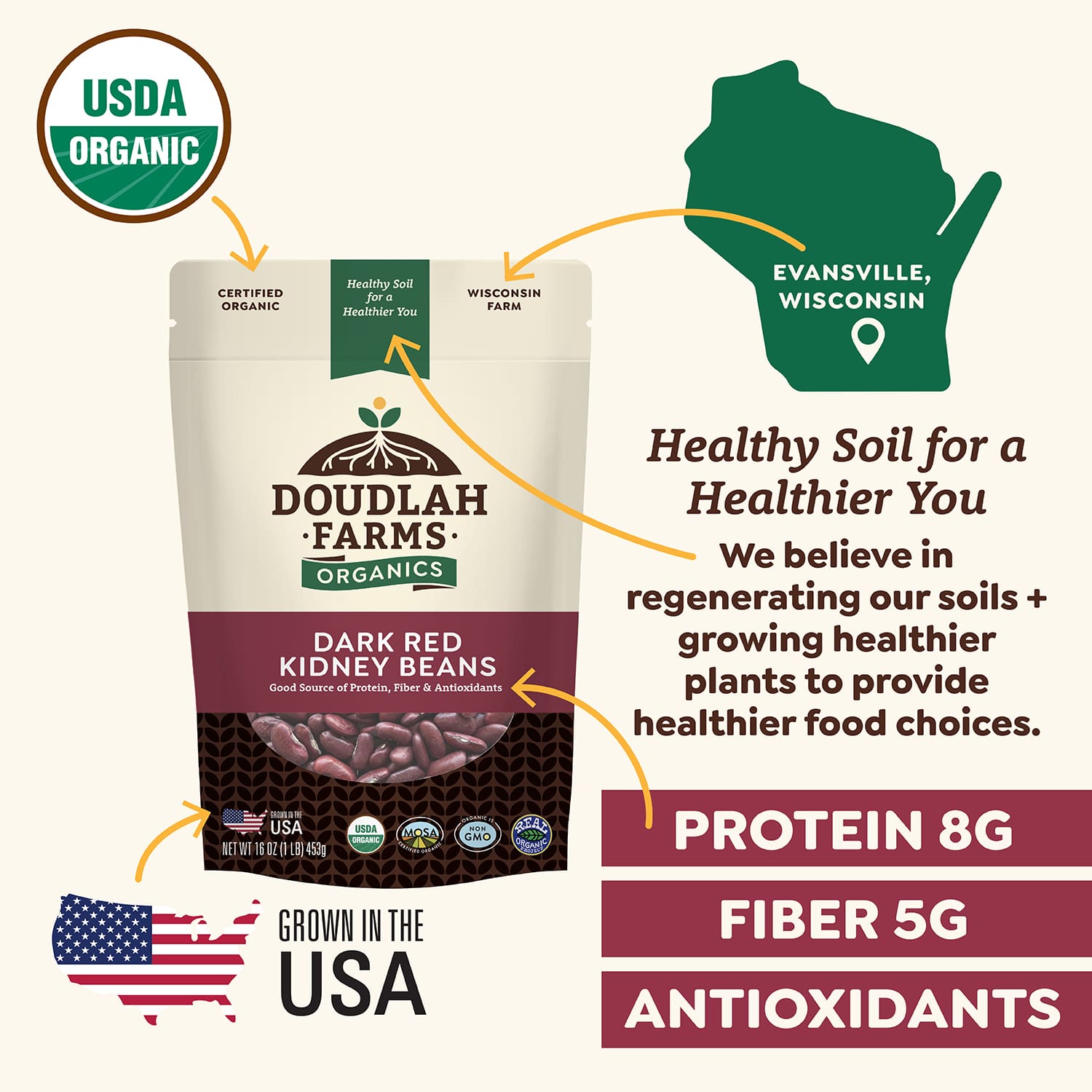 Grown in Wisconsin, USA, on our sixth-generation organic family farm. Supporting Doudlah Farms means supporting American farmers and sustainable agriculture.