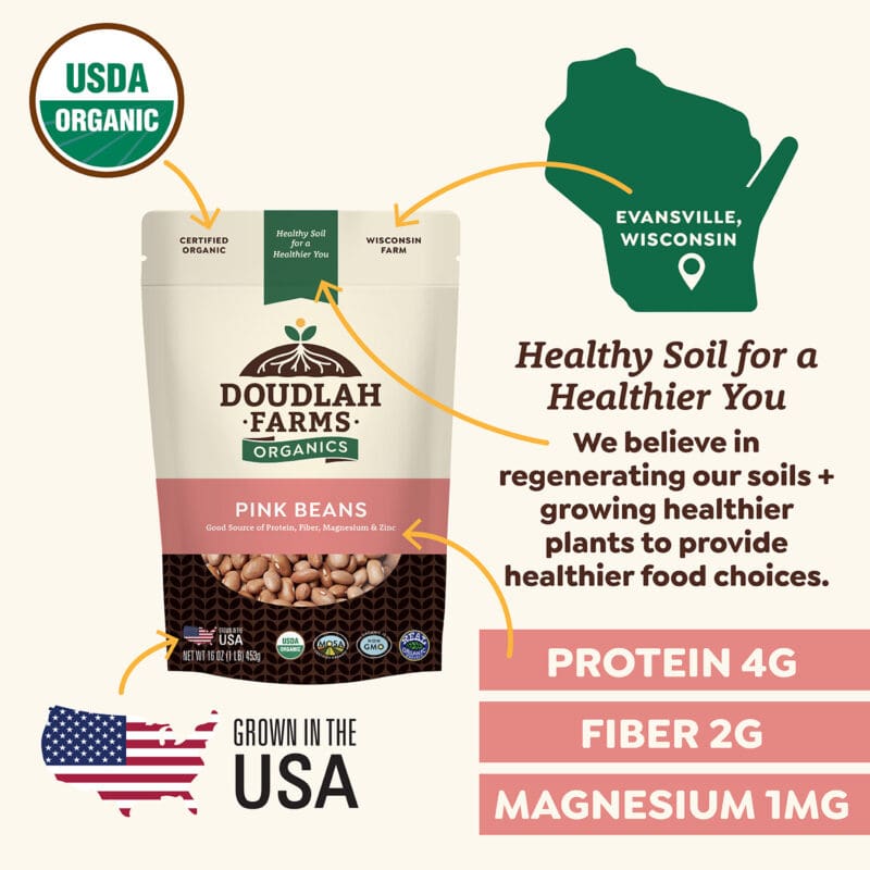 Our Pink Beans are grown in certified organic soils using regenerative farming practices and harvested at peak flavor for exceptional taste. These small, pale-pink beans turn reddish-brown when cooked and deliver a rich, meaty flavor with a slightly powdery texture, similar to kidney beans. A favorite in Old West recipes, Pink Beans are perfect for chili, Cajun-inspired dishes, and comforting classics like shrimp bisque or pink beans with chicken.