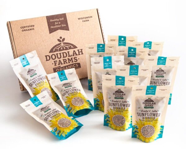 Upgrade your snacks with Doudlah Farms Organic Sunflower Kernelsโshell-free, non-GMO, and grown on Wisconsinโs regenerative soils. Using biodynamic farming methods, we deliver a kid-friendly, mother-approved treat thatโs as delicious as sustainable.